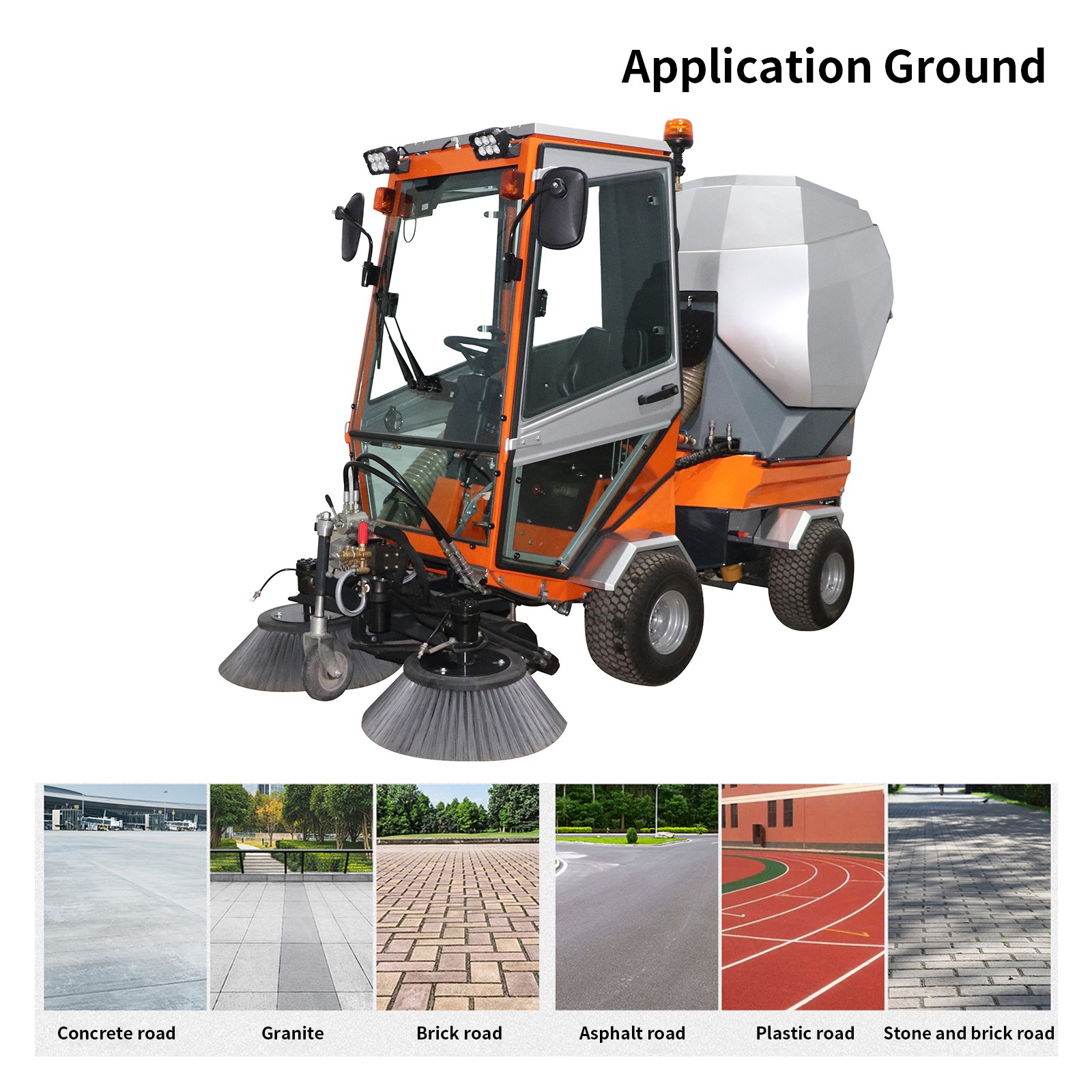 A2190 outdoor multi-purpose cleaning sweeper,comprehensive dust suppression. The sweeping width is up to 1900 mm, and the working efficiency is up to 13000 square meters/hour. It is equipped with a 48V/100Ah battery, and the front sweeping brush is equipped with two atomizing nozzles to we the cleaning area and absorb dust. The garbage bin adopts an innovative filtration system to suck the smallest dust particles into the garbage bin. The operator can dump the garbage into the garbage bin while sitting in the driver’s seat. When cleaning dry areas, the sweeping brush speed can be adjusted to reduce the dust raised by the rotating sweeping brush.