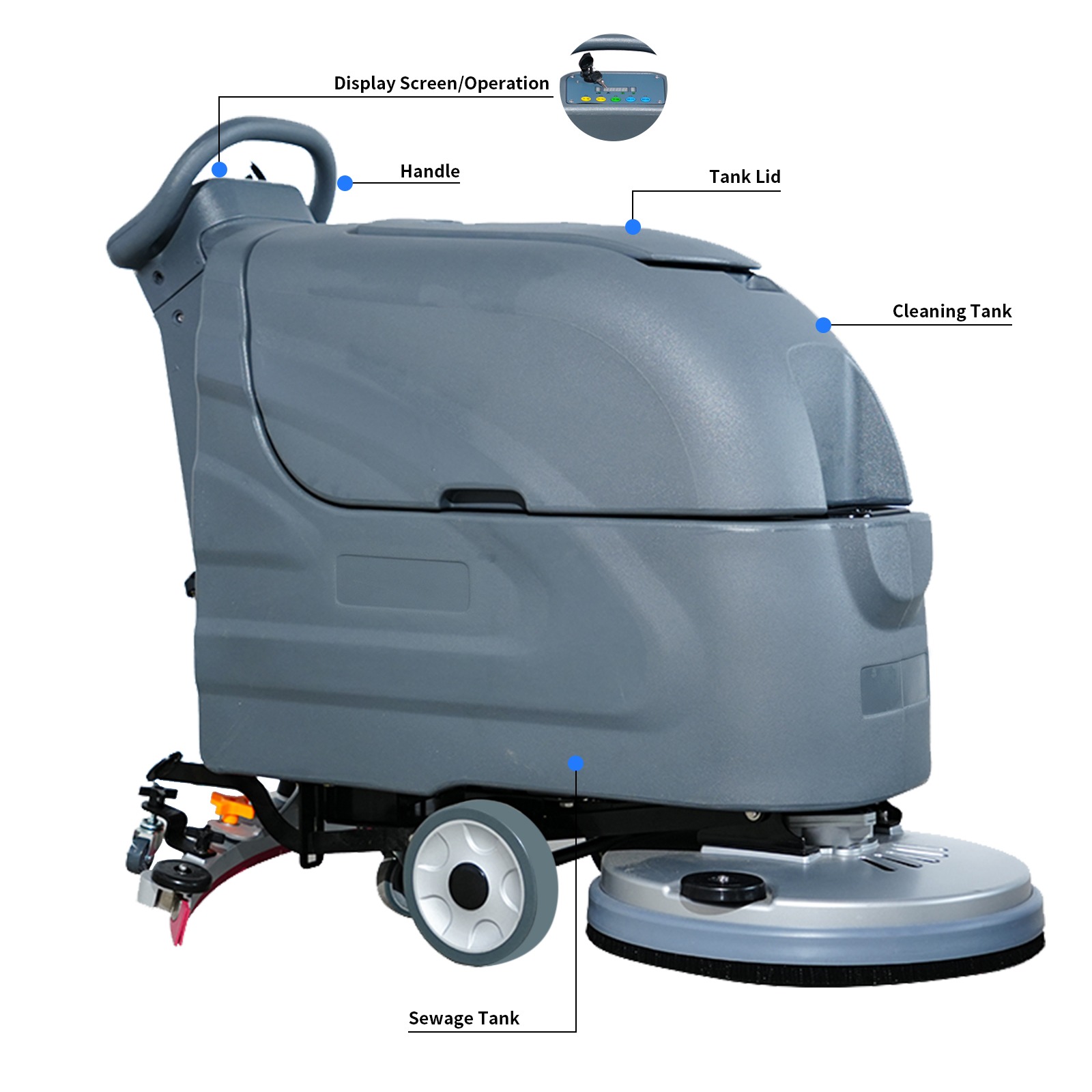 Equipped with a 65L sewage tank and a 60L water tank, it minimizes downtime for refills. Featuring an intelligent system, durable aluminium alloy chassis, and quick brush installation, this scrubber is ideal for large-scale cleaning tasks in industrial and commercial spaces.