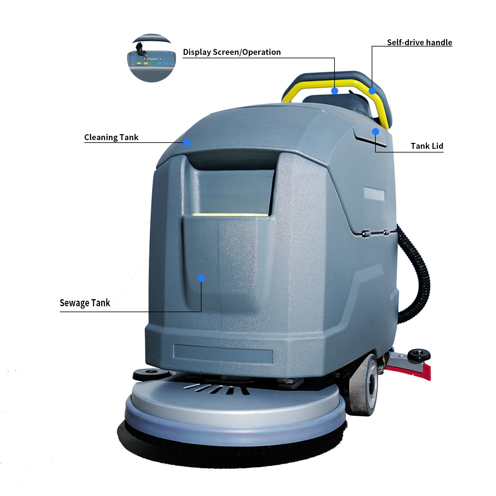 The AD500BT Walk-Behind Floor Scrubber is designed for efficient, long-lasting cleaning with a 500mm cleaning width and powerful 550W brush motor. It features a 65L sewage tank and 60L clean water tank for extended use without frequent refills.